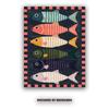 Colorful Fish Rug Striped Design Navy Background Coral Border Vibrant Kids Room Playroom Carpet for Home Decor Floor Mat