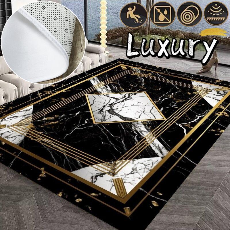Alfombra Decorativa de Sofá para Interiores y Exteriores de Lujo Negra Incrustada con Oro Alfombra de Área para Mesas de Café Alfombrilla Suave Antideslizante para Niños