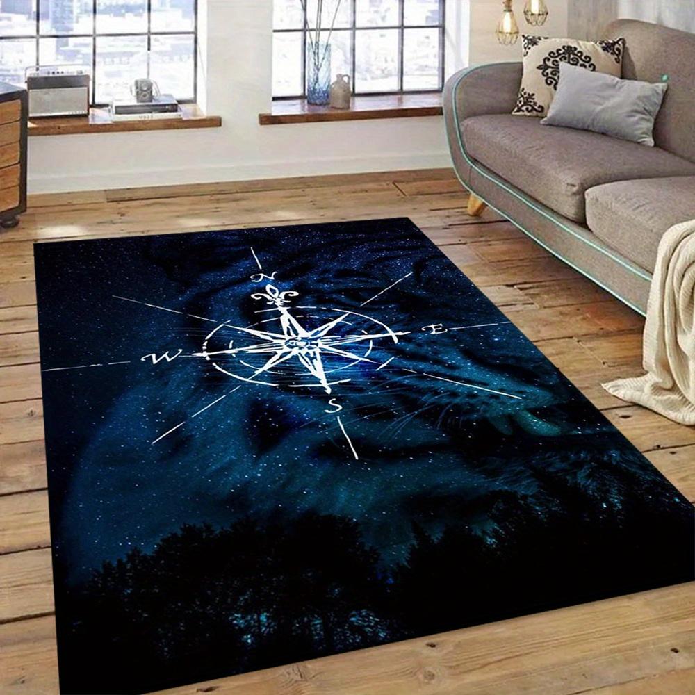 Velvet area carpet weighted crystal velvet 1pc blue compass pattern printed non-slip area carpet suitable for living decoration