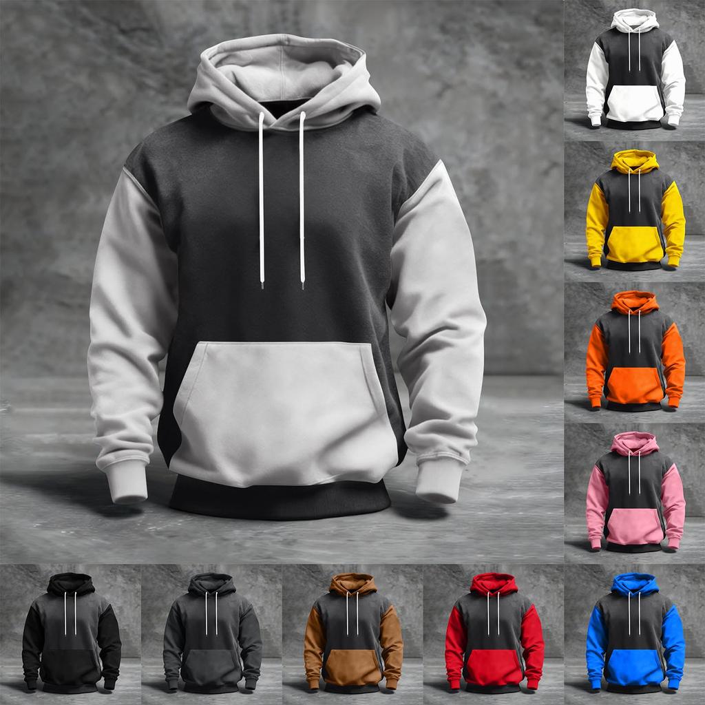 Sudadera con capucha para hombre con bloques de color, con bolsillos, casual y cómoda