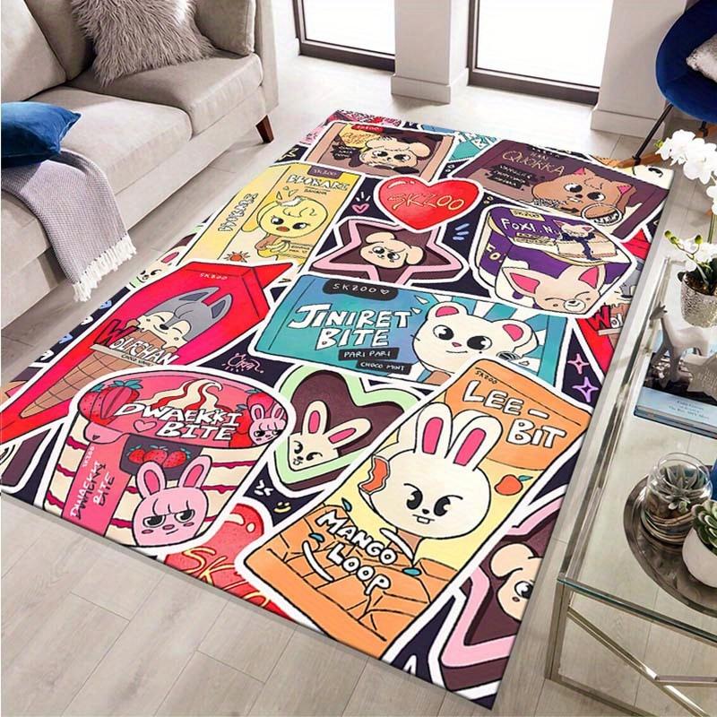 K-pop Idol Cute Cartoon Carpet Non-slip Polyester Carpet with Vibrant Mango and Rabbit Design for Bedroom Decor
