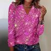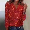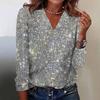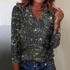 Women's Printed V-neck Long Sleeved T-shirt Pullover Top