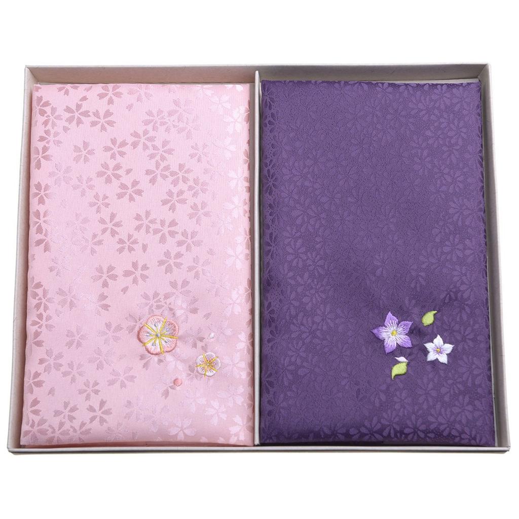 Set of 2 Soft Kinpaku Fukusa (Gold Wrapping Cloths) with Small Floral Embroidery, Made in Japan, Rinzu Kinpaku Fukusa Set for Condolences and