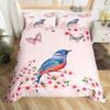 Cute Birds Duvet Cover King Size Pink Peach Flower Bedding Set Polyester Bird Butterfly Wild Animal Comforter Cover For Boy Girl