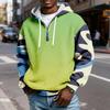 Sudadera Deportiva Casual para Hombre con Capucha y Media Cremallera a Cuadros con Cordón y Estampado