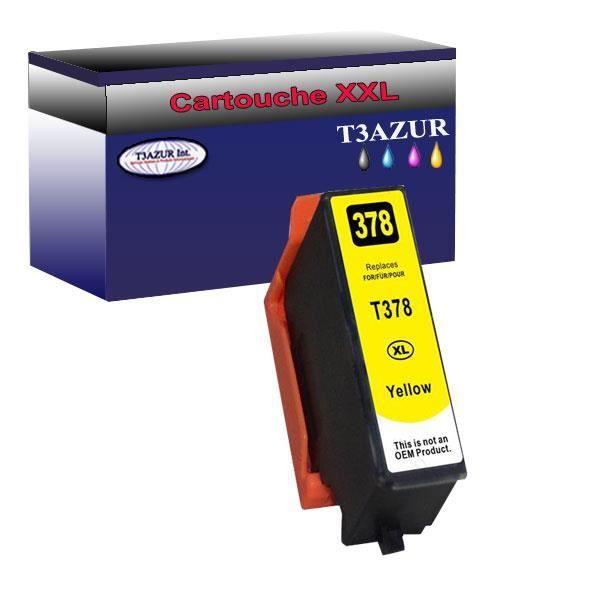 Cartouche d'encre jaune compatible T3AZUR pour imprimantes Epson Expression Photo. Contenance : 13 ml (rendement indiqué 5%). Remplace les références Epson T3794 / T3784 (378XL). Pack de 1 cartouche, produit générique non d’origine. Compatibilité : Epson Expression Photo XP-8500, XP-8600, XP-8605, XP-8606, XP-8700 (Small-in-One). Qualité : encre haute qualité assurant une excellente restitution des couleurs et une bonne tenue. Conforme aux normes européennes ISO 9001/14001, STMC, CE et ROHS. 100 % compatible avec les modèles listés. Usage : idéale pour impressions photo et documents couleur nécessitant un jaune vif et précis. Remplace la cartouche d’origine à moindre coût tout en conservant une qualité d’impression satisfaisante. Conseils : agitez légèrement avant utilisation et effectuez un nettoyage de tête si nécessaire après installation. Le vendeur confirme que ses produits sont conformes à toutes les lois applicables et ne sont proposés que s'ils sont conformes aux politiques de Joom et aux lois européennes sur la sécurité et la conformité des produits.