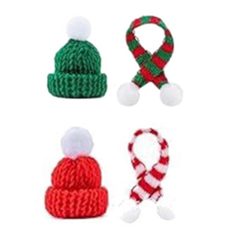 Bufanda de Navidad tejida para botella de vino tinto Sombrero de Navidad × 1 juego