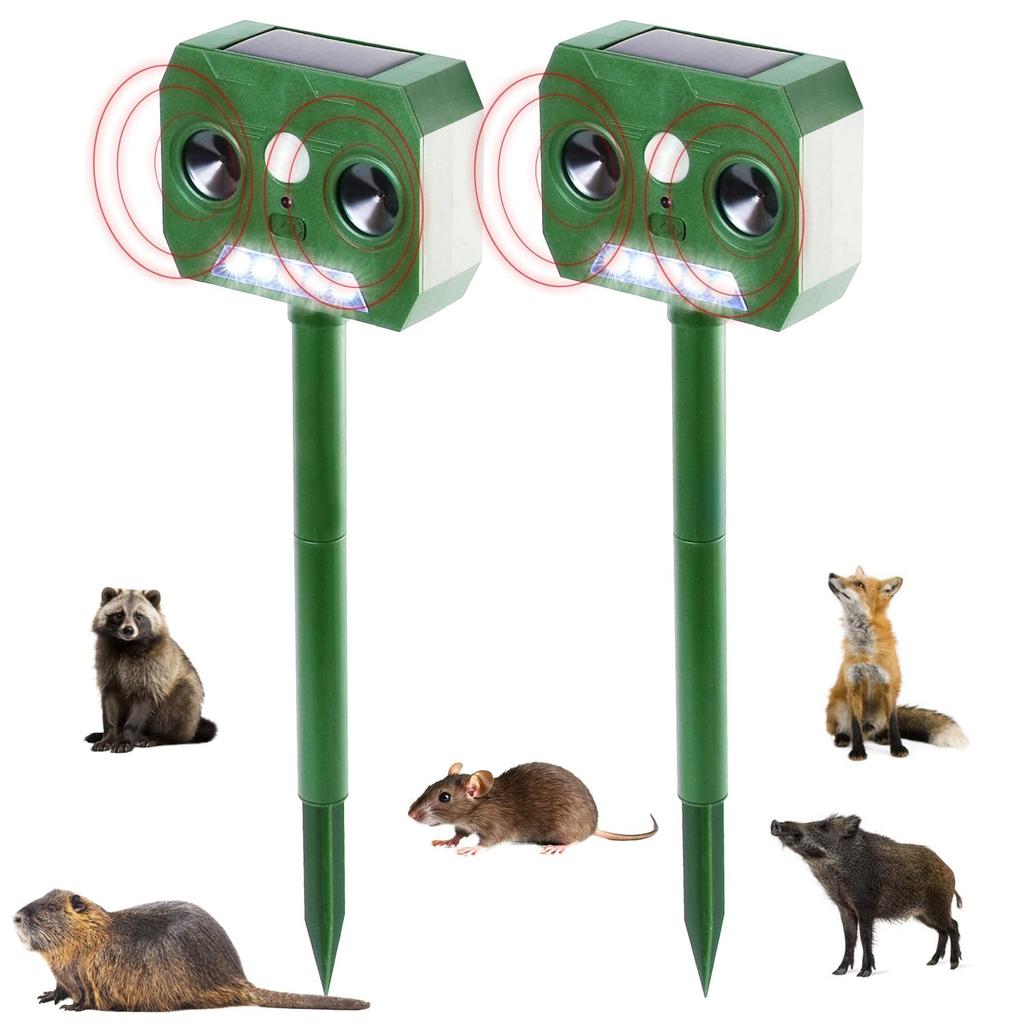 Dawnlord Animal Repellent Set of 2 away and all other pests with ultrasonic and LED flashing Infrared Sensor Activates Only When Needed IP67