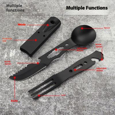 Acero Inoxidable para Exterior Con Silbato Cuchara Tenedor Set Multifuncional Cuchillos de Camping Vajilla de Camping Combinación Viento para Exterior