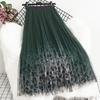 Women Spring Fall High Waist All Match Gradient Color Peacock Printed Mesh A Line Skirt