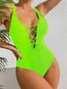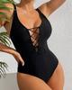 Cikini-One Piece Swimsuit for Women, Lace-up Front, Monochrome, Beach Swimwear, Bathing Suit, Summer