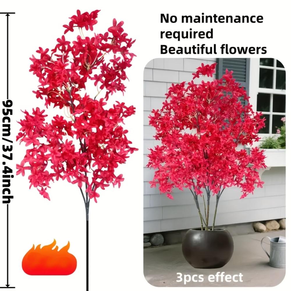 1pcs Large Artificial Cherry Blossom Trees with Vibrant Red & Pink Blooms - Realistic Plastic Indoor/Outdoor Decor, Self-Support