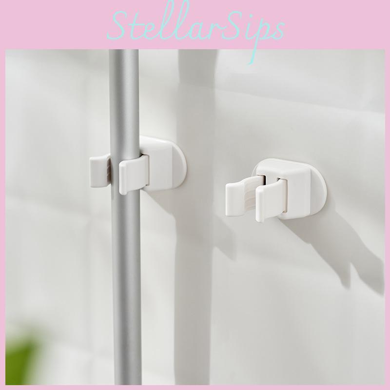 Soporte para escoba estilo japonés Montaje en pared Ganchos adhesivos Para organización del hogar y el baño Construcción ABS TPR