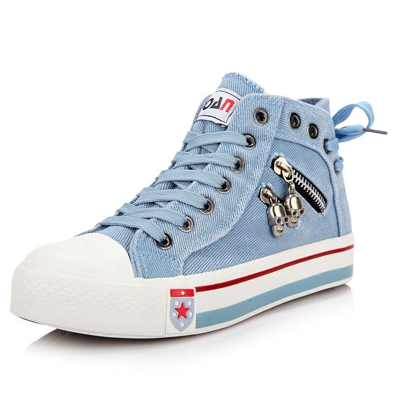 Women Fashion Sneakers Denim Canvas Casual Shoes Trainers Walking Skateboard Lace-up Shoes Femmes