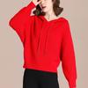Suéter Holgado de Estilo Perezoso para Mujer Otoño Invierno Nuevo Top Manga Murciélago Grueso Corto con Capucha Tejido Capa Base