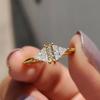 Huitan Modern Fashion Women Wedding Rings Geometric Shaped Gold Color Cubic Zirconia Ring Engagement Party Luxury Female Jewelry