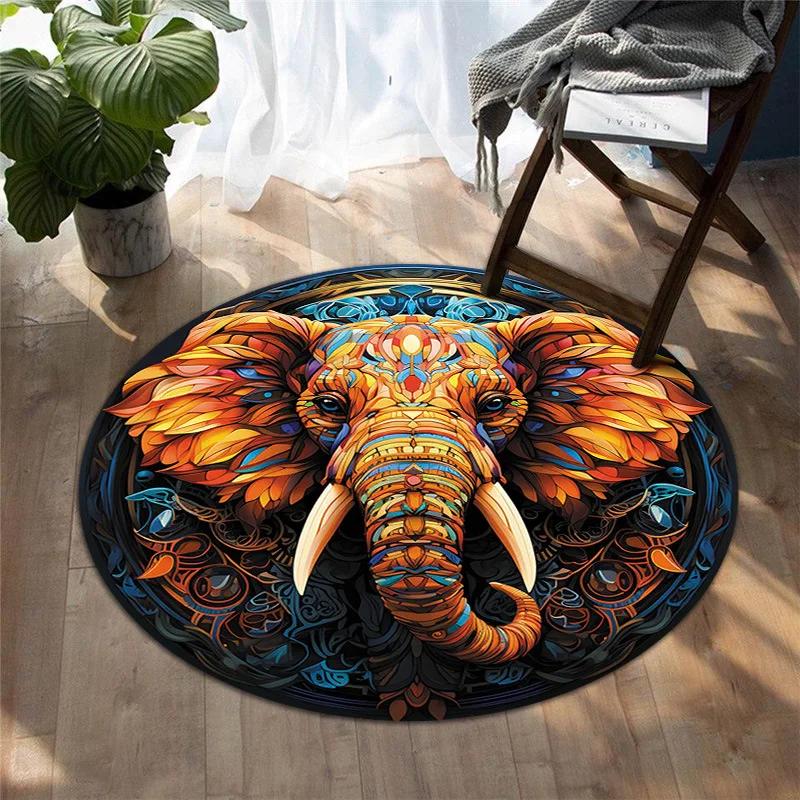 Round Creative Animal Printing Carpets Living Room Bedroom Bedside Computer Chair Pad Anti-slip Machine Washable Floor Mats