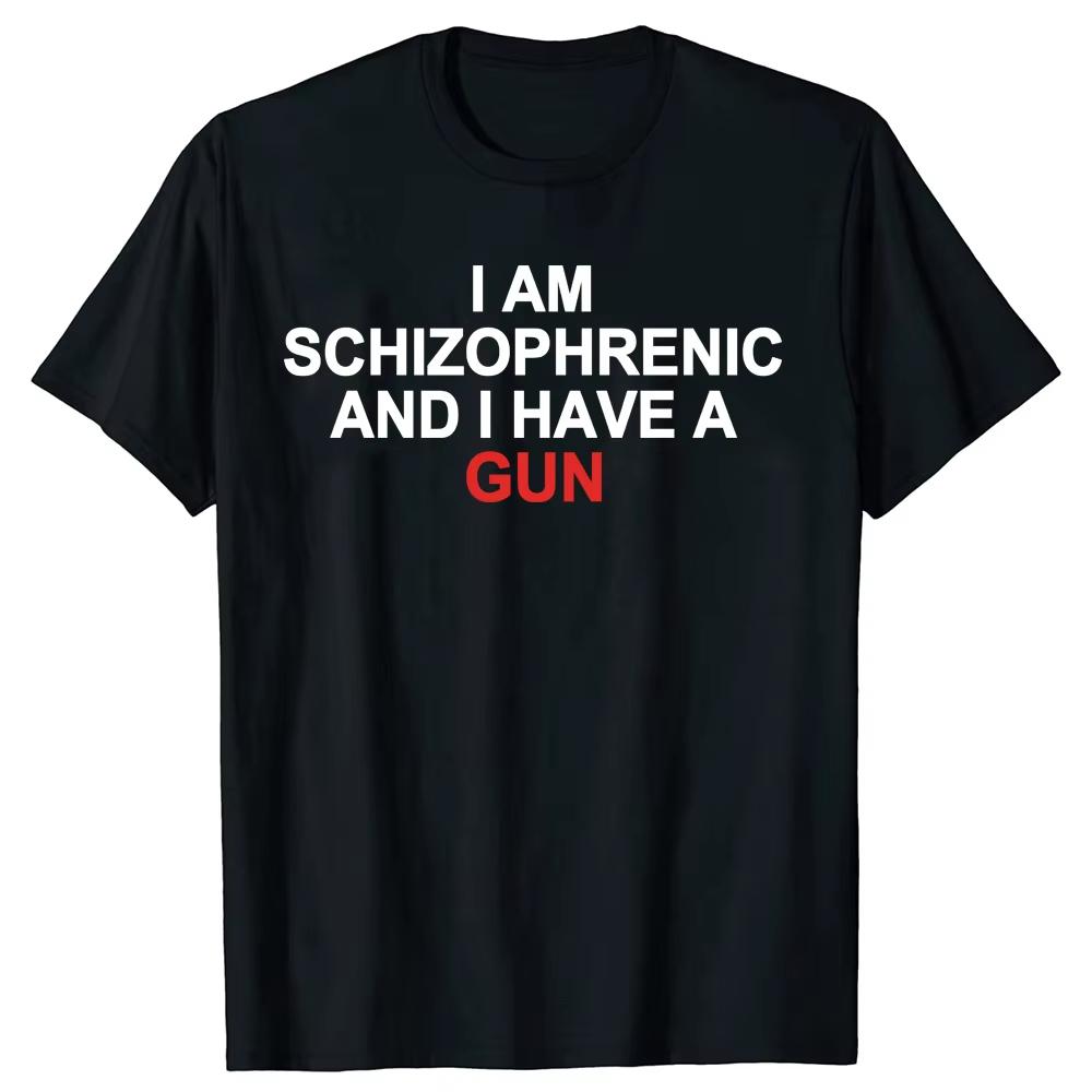 I Am Schizophrenic and I Have A Gun T Shirt Funny Graphic Streetwears Cotton Unisex Summer Short Sleeve T-shirts EU Size 01232