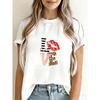 Carta de Amor Estilo Creativo Estampado de Labios de Leopardo Cuello Redondo Camiseta Surfing Playa Verano Primavera Mujer Manga Corta