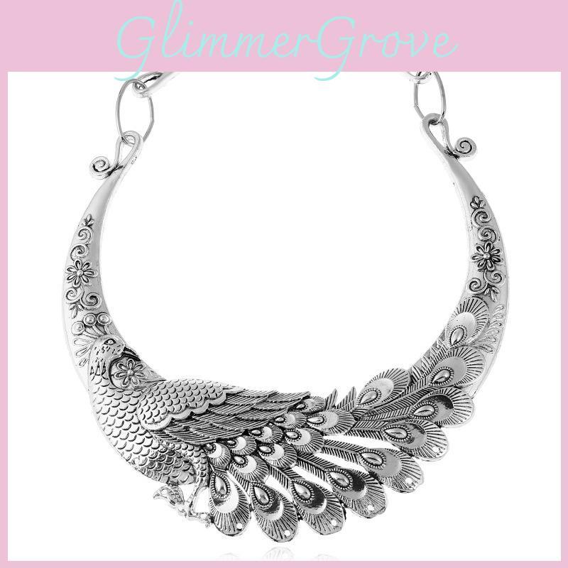 Peacock And Dragon Pendant Necklace With Metallic Chain For Ethnic Style Costume Accessories