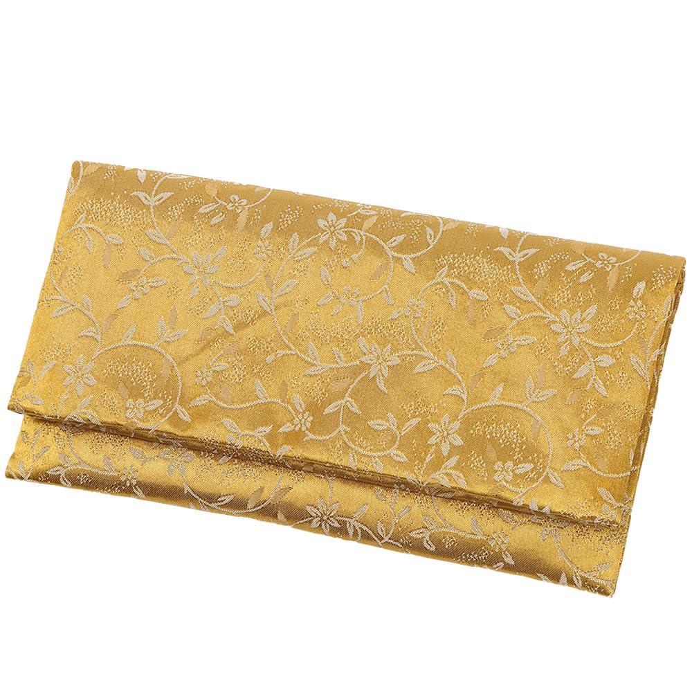 Buddhist prayer bead pouch, bifold, unisex, Kyoto damask, paper box, gift, made in Japan, small chrysanthemum and Chinese flower pattern, gold,
