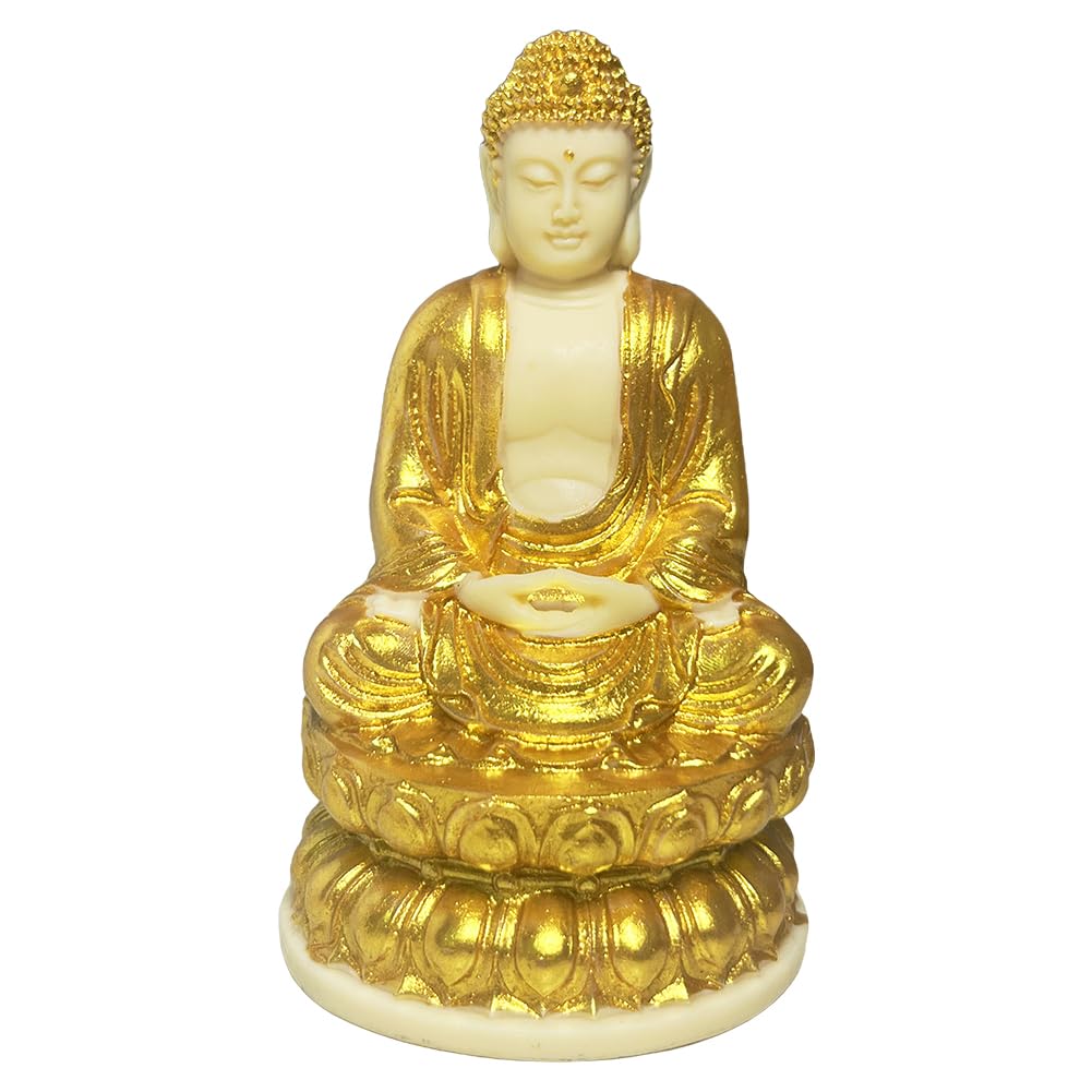 [Specifications] Buddha figurine with lotus pedestal. ●Material: Ivory, pressed with fruit powder. ●Style: Gold. ●Buddha size: Approx. 12.5*7.5*6.2cm. Gift box size: 17.5x12x7.3cm. ●Maintenance: Do not expose the figurine to water or sunlight. This product includes a gift box.