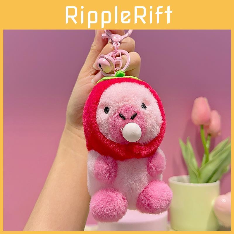Cute Pink Hooded Capybara Plush Keychain Bubble Blowing Gift For Key Lovers