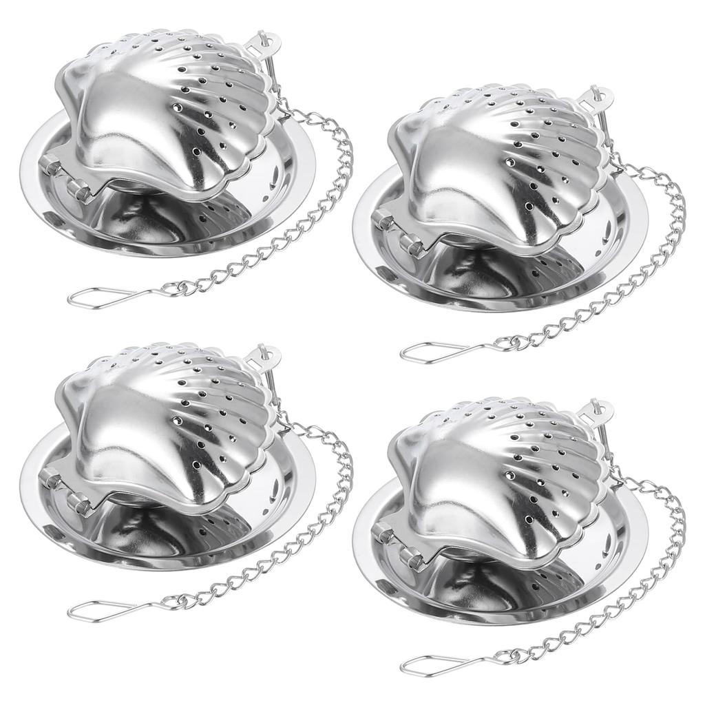 uxcell 4-Piece Tea Infuser Filter, Loose Tea Steeper, Stainless Steel Tea Strainer with Seashell Tea Ball and Chain for Loose Leaf Tea, Silver