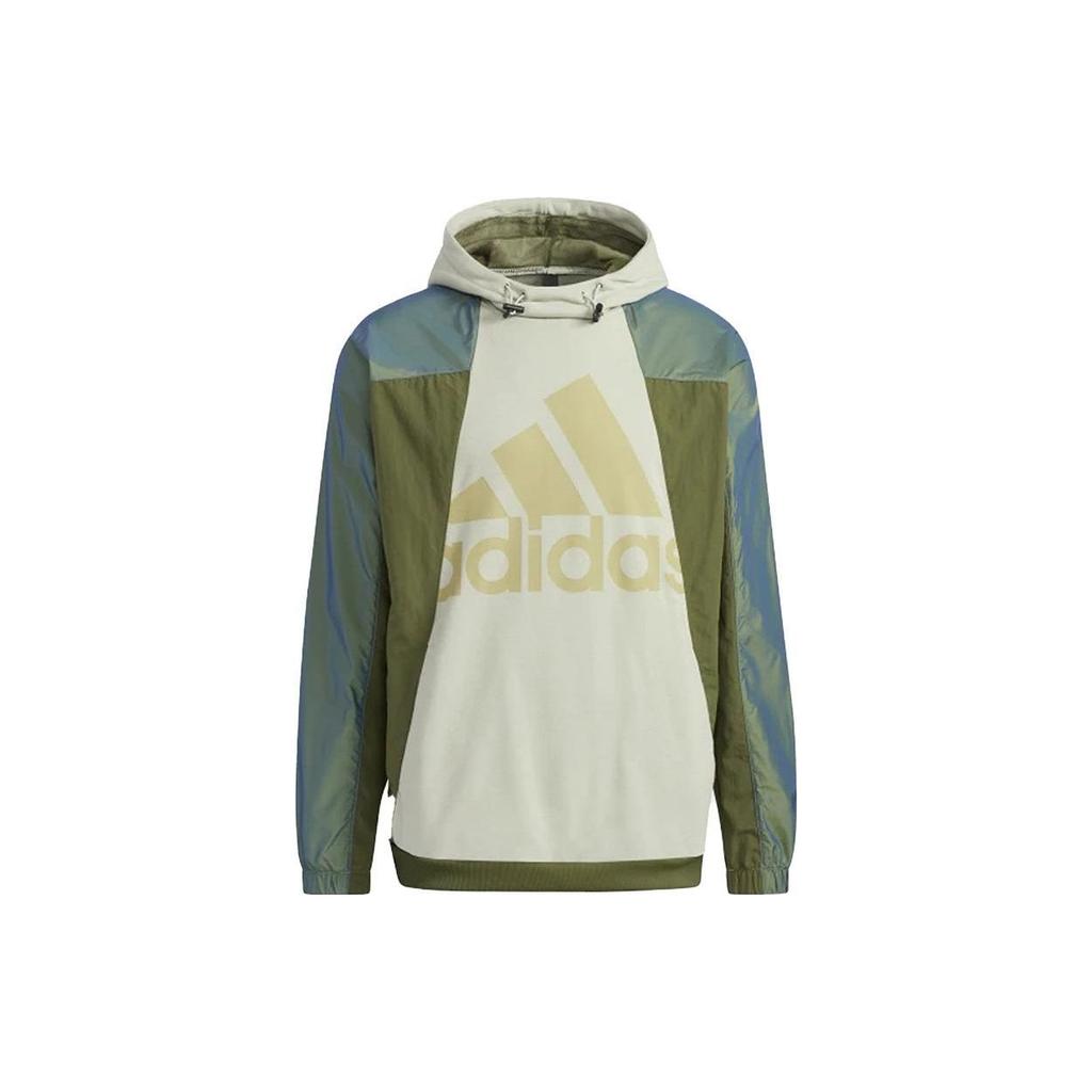 Adidas Serie Estilo de Vida Deportivo Pulóver con Capucha Color Block Manga Larga Sudadera American Vintage Hombre Sudadera Verde Crema GQ1171