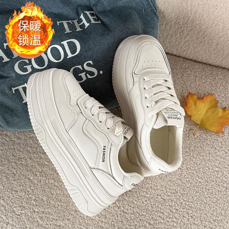First layer cowhide women's shoes winter new thermal velvet cotton shoes platform white shoes women's height-increasing casual sports shoes