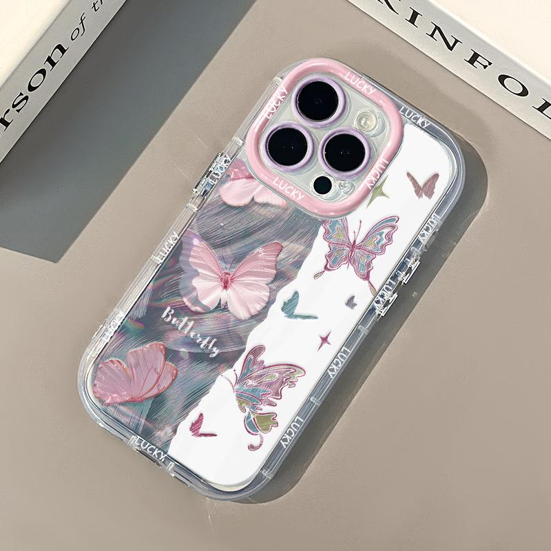 Contrast Color Butterfly for Apple 17 Cream Feather Pattern Cartoon Phone Case for IPhone13/16promax Women's Model