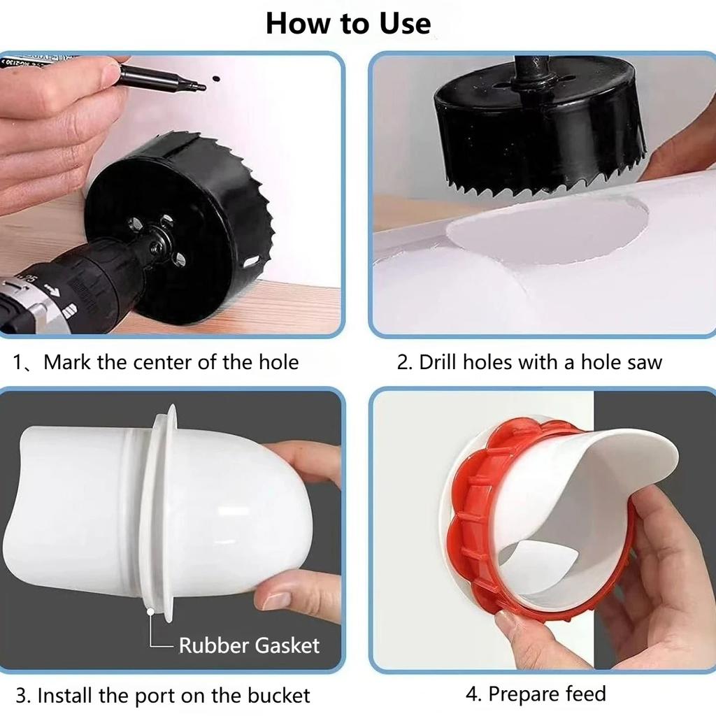 Comederos para pollos sin desperdicio, Comedero automático para aves de corral DIY con 1 sierra de corona, Kit de alimentación por gravedad para cubos, barriles, contenedores, comederos