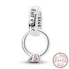 Real 100% Silve Charms Beads Love Family Wedding Ring Charm Fit Original Bracelet Bangle Pendant Diy Jewelry Making