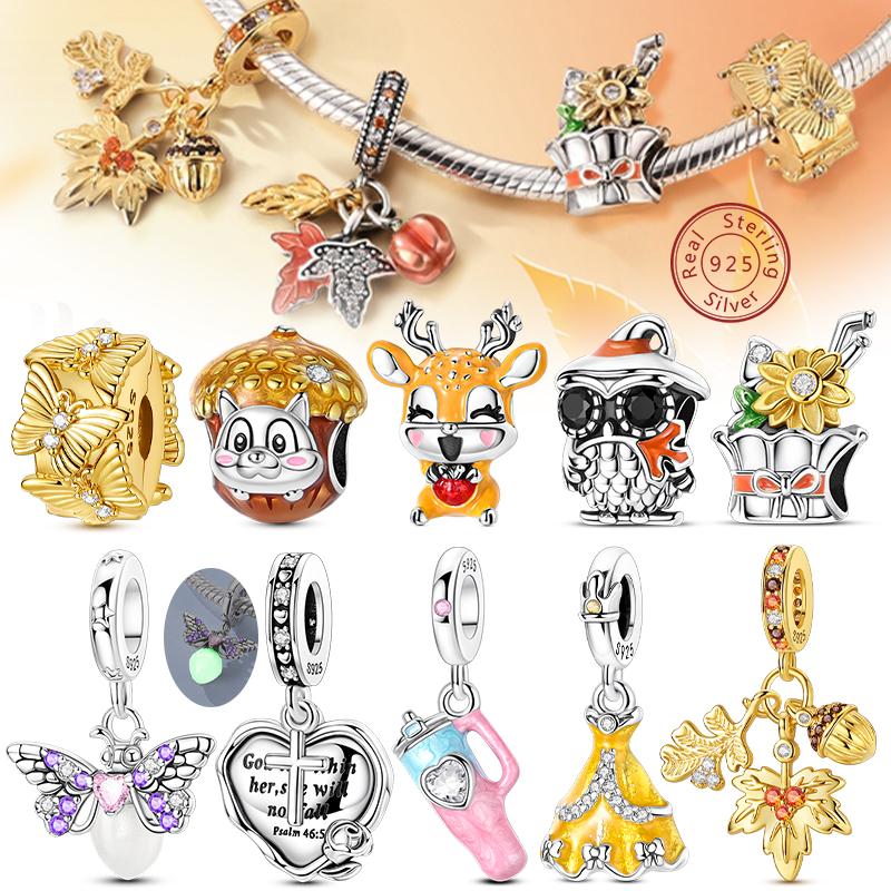Original Copper Charms Beads Pendants Maple Leaf Squirrel Butterfly Cat Beads Fit Bracelets Women Jewelry Accessory