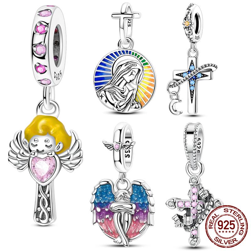 Copper Dangle Charm Cross Angel Holy Mother Pendant Fit Original Bracelet Diy Woman Jewelry Gift