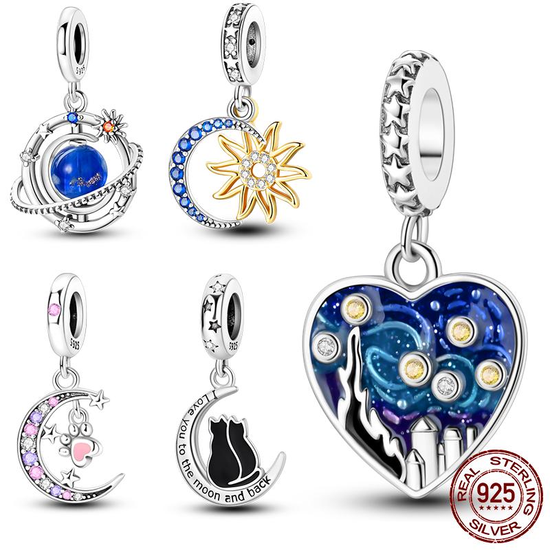New Copper Sun Moon Pendant Van Gogh Starry Sky Charms Bead Fit Original Bracelet For Women Diy Gift