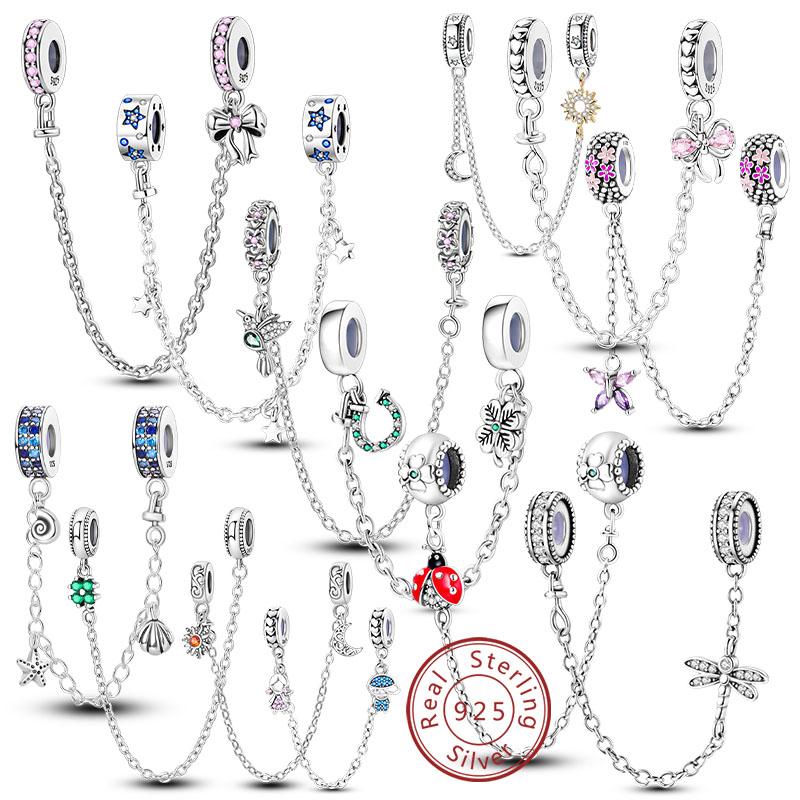 Original Copper Safety Chain Clasp Clip Charms Beads Moon Sun Bow Heart Love Charm Fit Bracelet Women Jewelry Gifts
