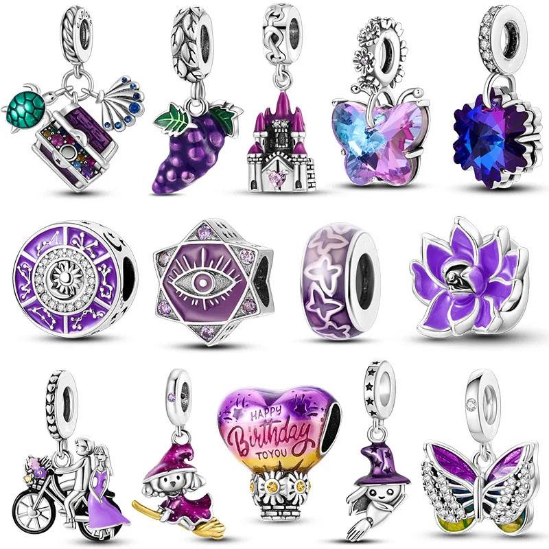Copper Plated Purple Charms Flower Butterfly Dangle Charm Beads Fit Original Bracelet Diy Pendants
