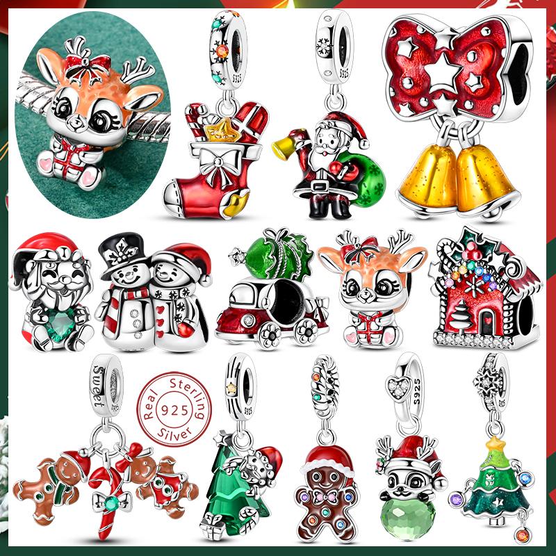 Christmas Charm Bead Pendant Copper Christmas Elk Snowman Santa Claus Charm Fit Original Bracelet Women Diy Jewelry