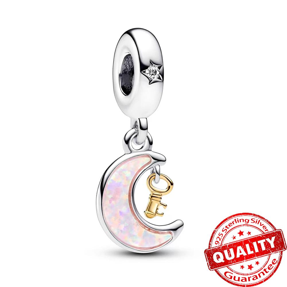 Charm Colgante Doble Opalescente de Cobre Brillante de Amistad y Colgante Bicolor de Llave y Luna Apto para Joyería Fina de Mujer