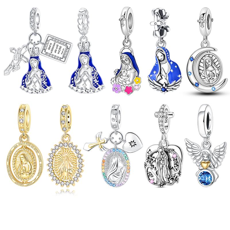Original Charms Bead Copper Inlaid Zirconium Nun Cross Angel Wing Pendants Fit Bracelet Jewelry Gift Marking