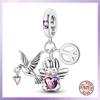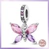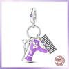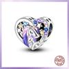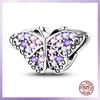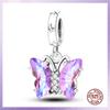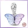 Purple Charms Copper Fit Original Pendant Bracelet Butterfly Glass Heart Feather Clip Charm Dangle Luminous Bead Diy Jewelry