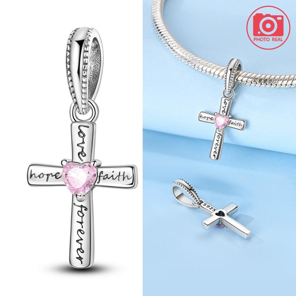 Charms Copper Eternal Love Pink Heart Cross Pendants Fit Plata Original Bracelets Women Jewellery Making Gifts