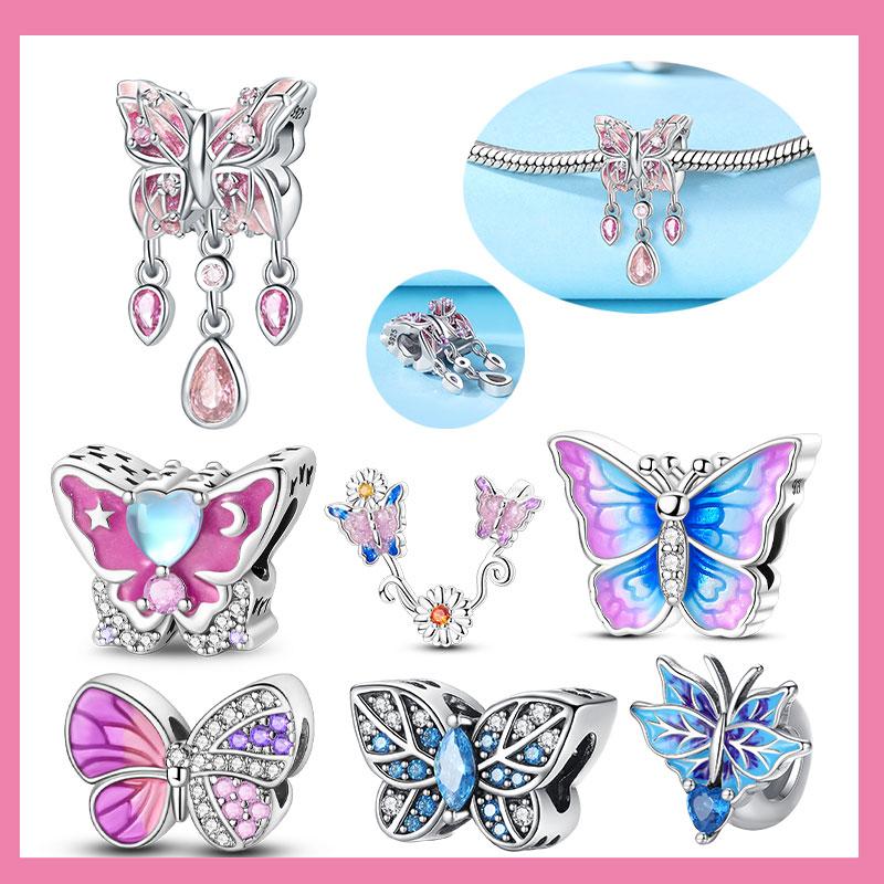 Copper Blue Pink Fantasy Butterfly Series Beads Pendant Fit Bangle Charms Bracelet Diy Women Original Jewelry