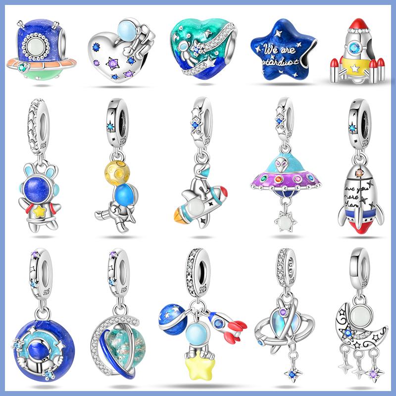 New Copper Fashion Glowing Space Astronaut Spaceship Charms Beads Fit Brand Original Bracelet Diy Jewelry Gift