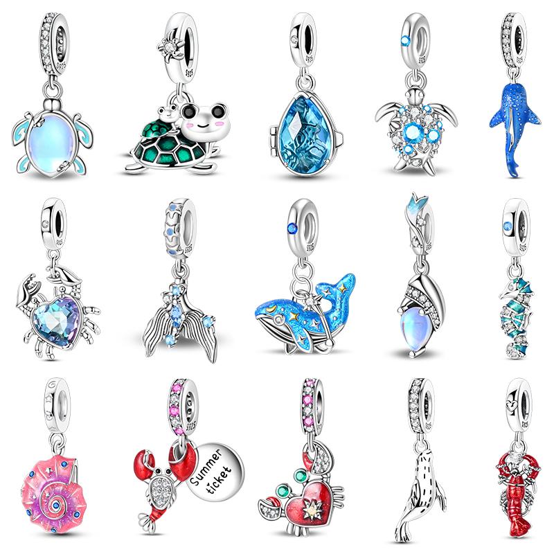 Summer Charms Copper Luminous Ocean Series Pendants Crab Whale Charms Beads Fit Original Bracelet Fine Diy Jewelry
