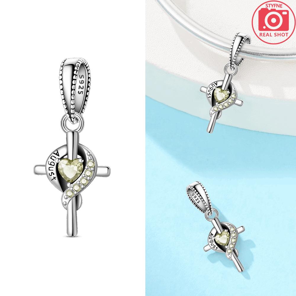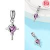 Women Pendant Original Red Zircon Birthstone Blue Gemstone Heart Cross Bead Fit Bracelet Copper Jewelry Accessory Charm Gift