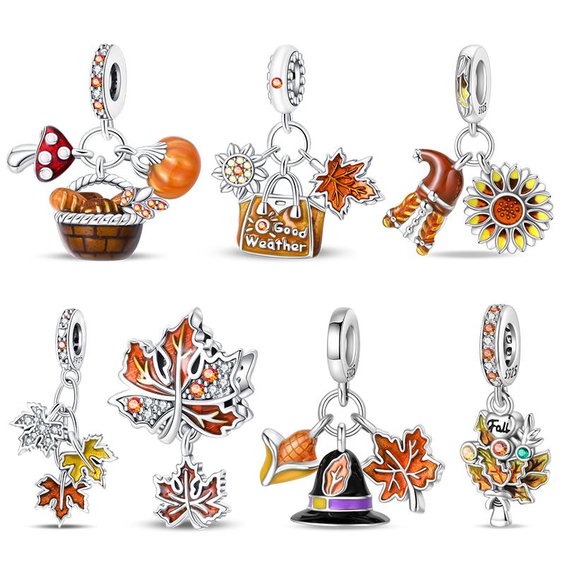 New In Autumn Color Element Maple Leaf Shape Charm Beads Fits Bracelets Necklace Women Luxury Pendants Bead Jewelry Gifts