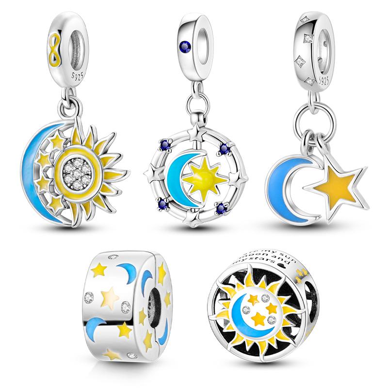 Copper Luminous Star Moon Pendant Fit Pandach Original Diy Bracelets Charm Beads Anniversary Birthday Gifts Luxury Jewelry