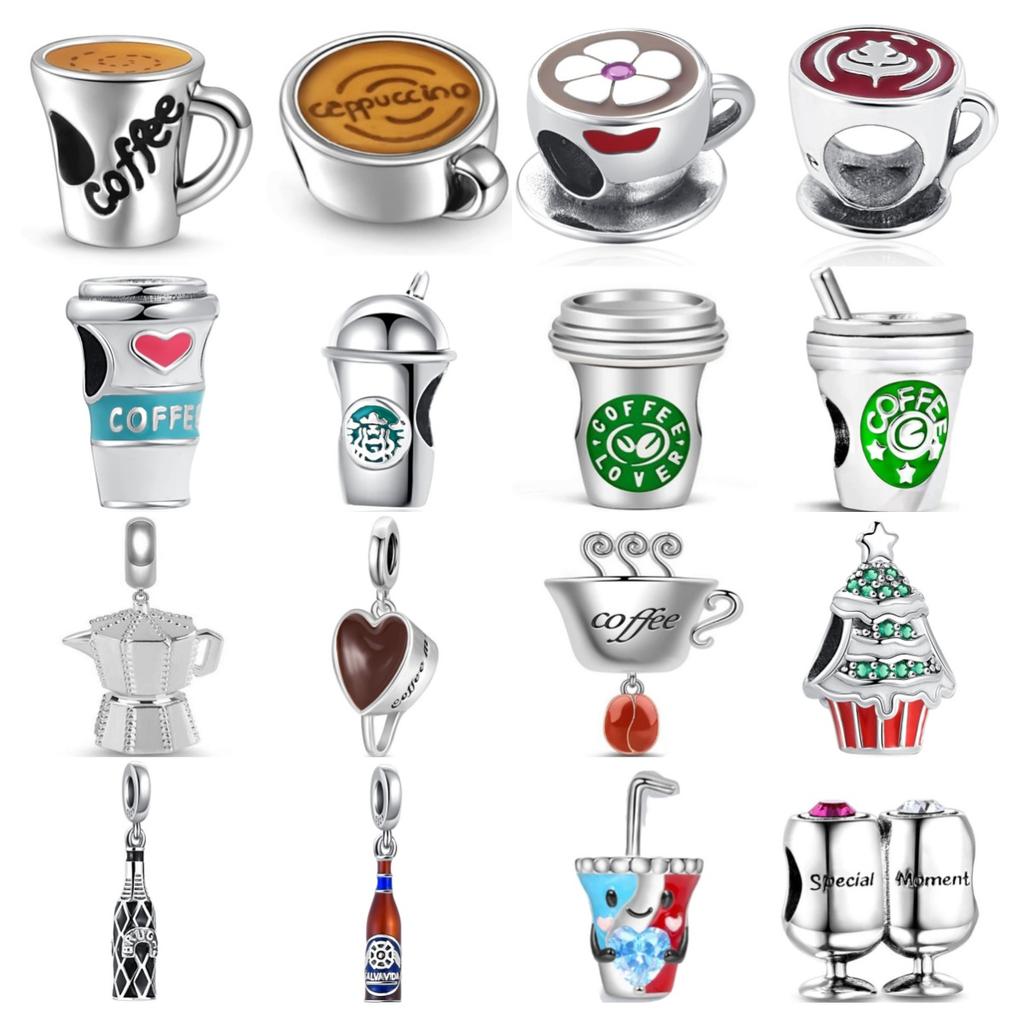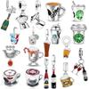 New Copper Pendant Coffee Cup Charm Bead Fit Original Women Bracelet Beer Wine Dangle Jewelry Gift